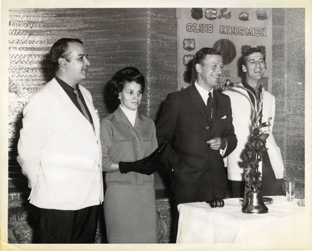 Vue rapprochée prise au restaurant Marino lors de la remise du prix, de g. à d. Jean Verreault, Émilienne Gravel (la gagnante), Gilles Lamontagne et Roland Beaulieu