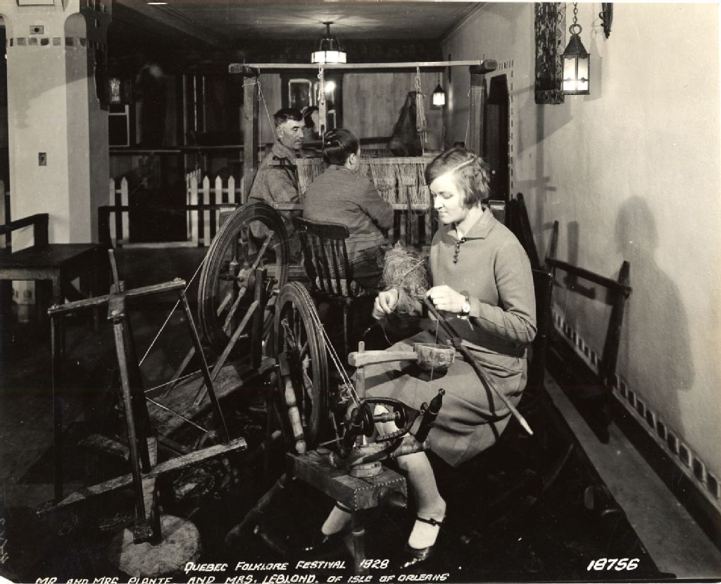Monsieur et madame Plante et madame Leblond à l'oeuvre dans la salle des métiers du Château Frontenac, mai 1928, Archives nationales à Québec, Fonds L'Action catholique, (03Q,P428,S3,SS1,D16,P21), Photographe non identifié.