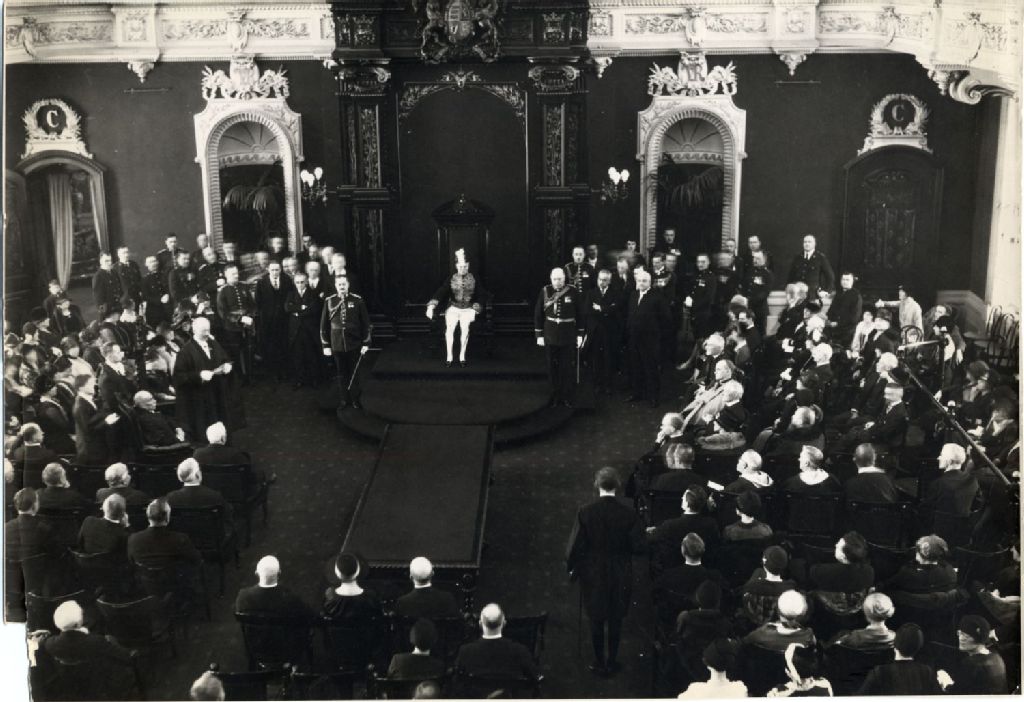 Cérémonie officielle au Parlement de Québec, [Vers 1920], Archives nationales à Québec, Fonds L'Action catholique, (03Q,P428,S3,SS1,D16,P37), Photographe non identifié.