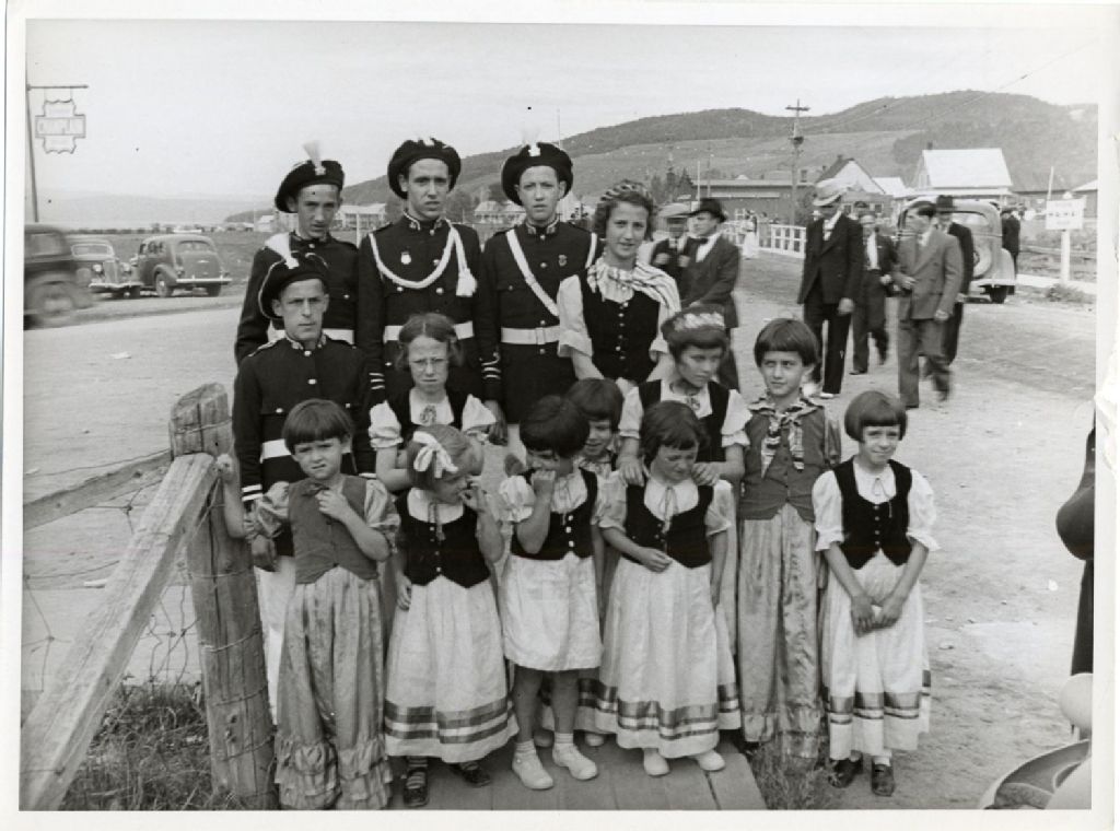Enfants de Saint-Alexis de La Grande Baie lors du Centième Anniversaire de l'arrivée des "21", les pionniers du Saguenay, 1938, Archives nationales à Québec, Fonds L'Action catholique, (03Q,P428,S3,SS1,D16,P38), C. N. R.