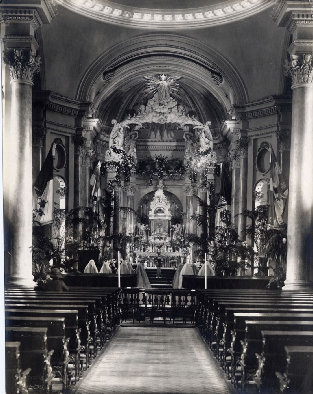 Vue intérieure de la chapelle du couvent des Franciscaines de Marie, [Vers 1920], Archives nationales à Québec, Fonds L'Action catholique, (03Q,P428,S3,SS1,D16,P4), Photographe non identifié.
