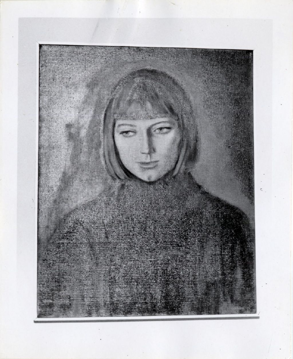 Tableau de l'artiste Louise Carrier "portrait", [Vers 1970], Archives nationales à Québec, Fonds L'Action catholique, (03Q,P428,S3,SS1,D17,P1), Photographe non identifié.
