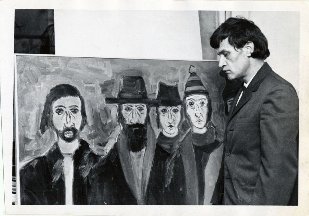 L'artiste Georges St-Pierre devant son tableau
