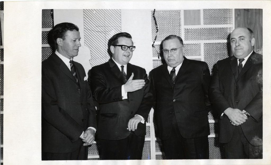 Gilles Lamontagne, Gaston Tremblay, Francis Boudreau et M. Savard, janvier 1967, Archives nationales à Québec, Fonds L'Action catholique, (03Q,P428,S3,SS1,D20,P37), Marcel Laforce / Photo l'Action.