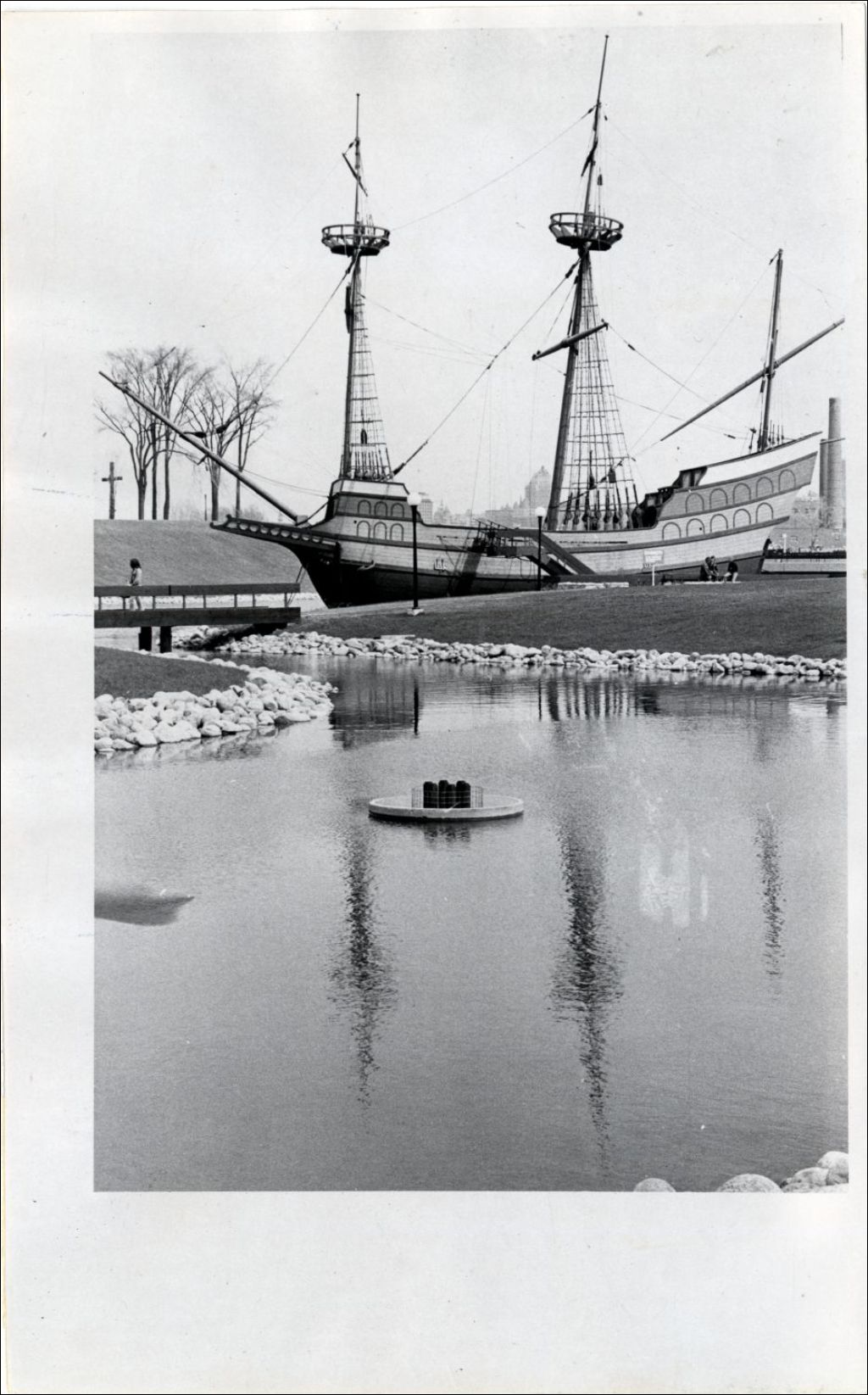Réplique du navire la "Grande Hermine", [Vers 1970], Archives nationales à Québec, Fonds L'Action catholique, (03Q,P428,S3,SS1,D28,P13-3), Photographe non identifié.
