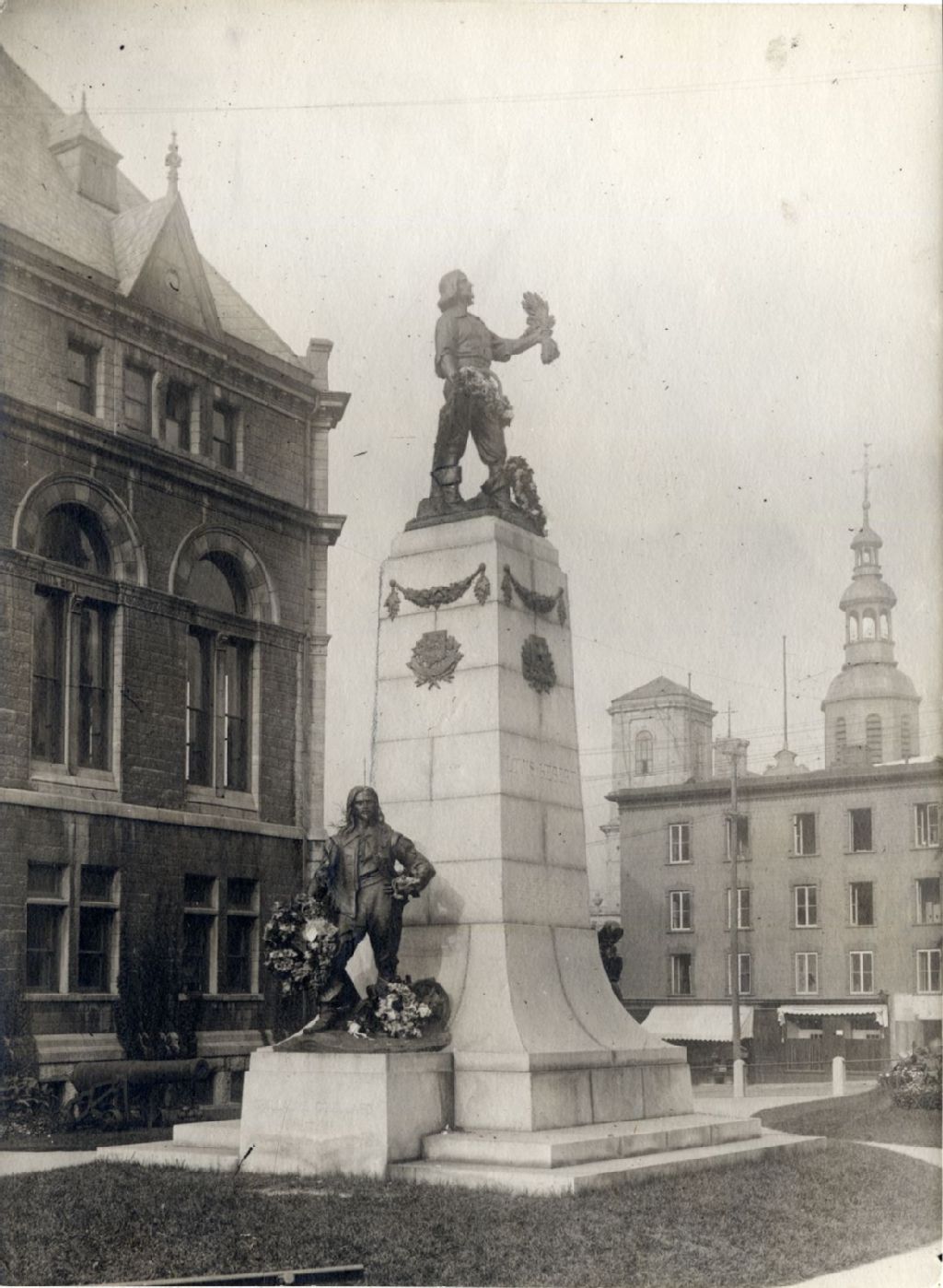 Monument de Louis Hébert, [Vers 1920], Archives nationales à Québec, Fonds L'Action catholique, (03Q,P428,S3,SS1,D28,P14-2), Photographe non identifié.