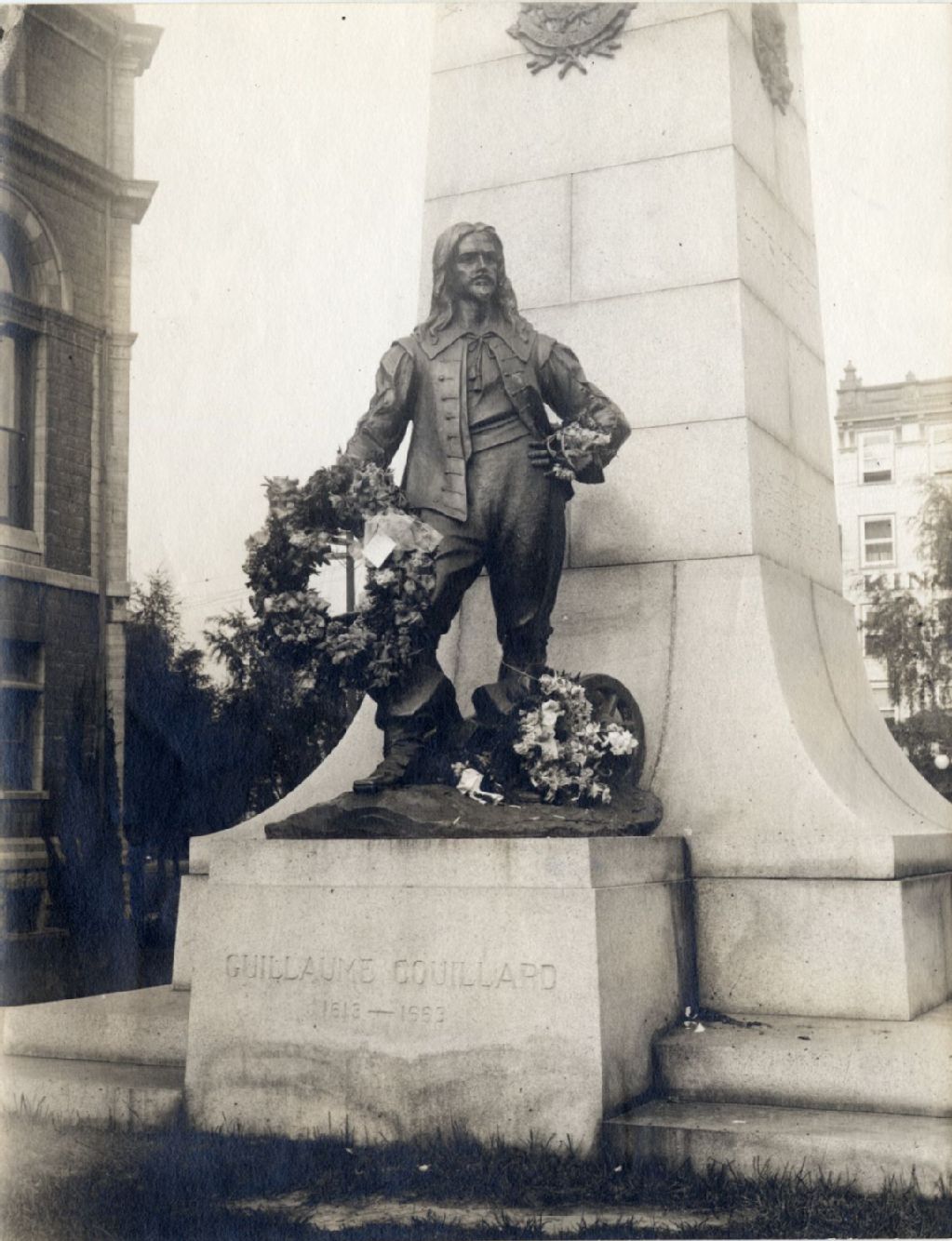 Statue "Guillaume Couillard" du monument de "Louis Hébert", [Vers 1920], Archives nationales à Québec, Fonds L'Action catholique, (03Q,P428,S3,SS1,D28,P14-3), Photographe non identifié.