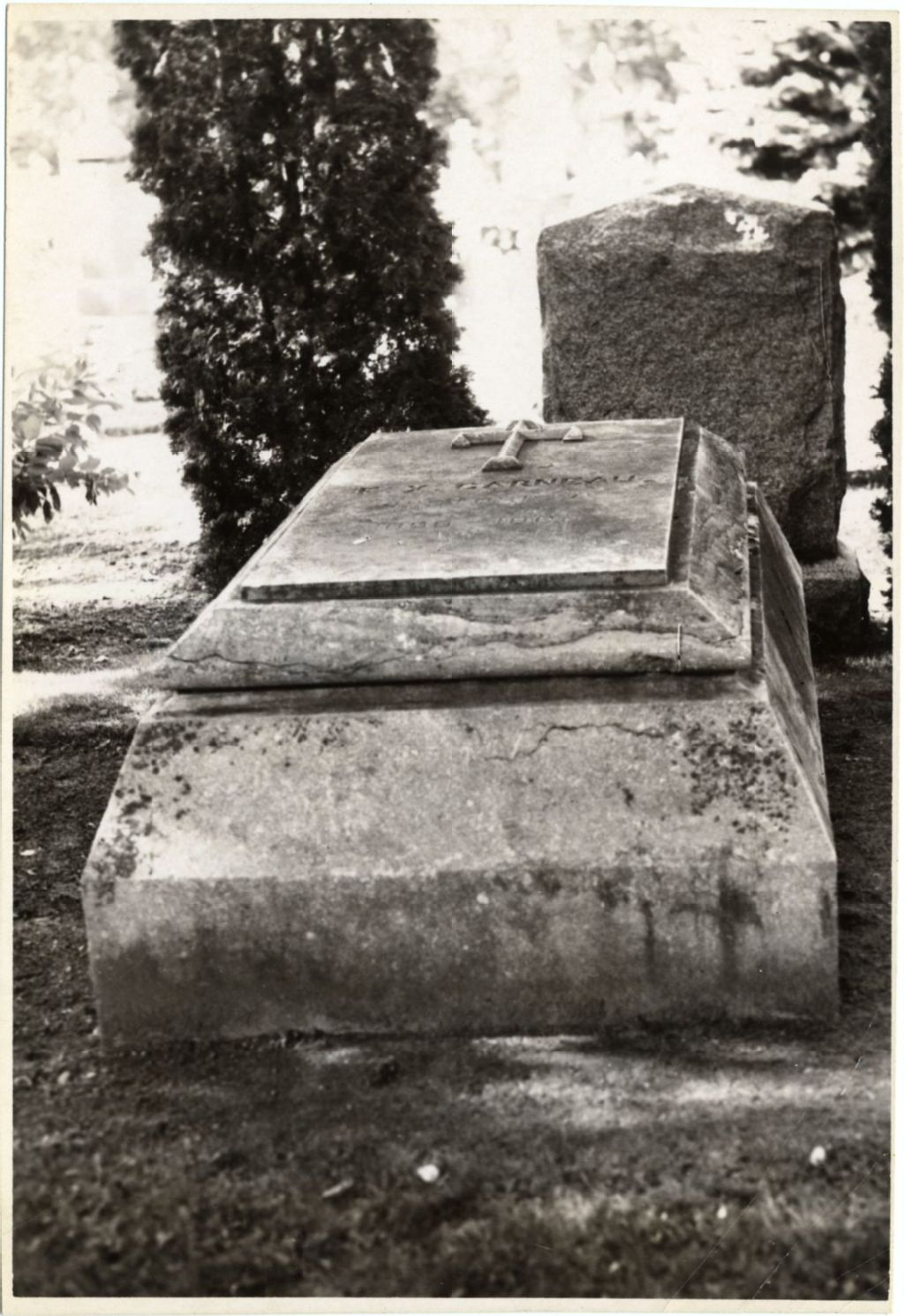 Monument à François-Xavier Garneau au cimetière Belmont, 1967, Archives nationales à Québec, Fonds L'Action catholique, (03Q,P428,S3,SS1,D28,P2-1), Photographe non identifié.