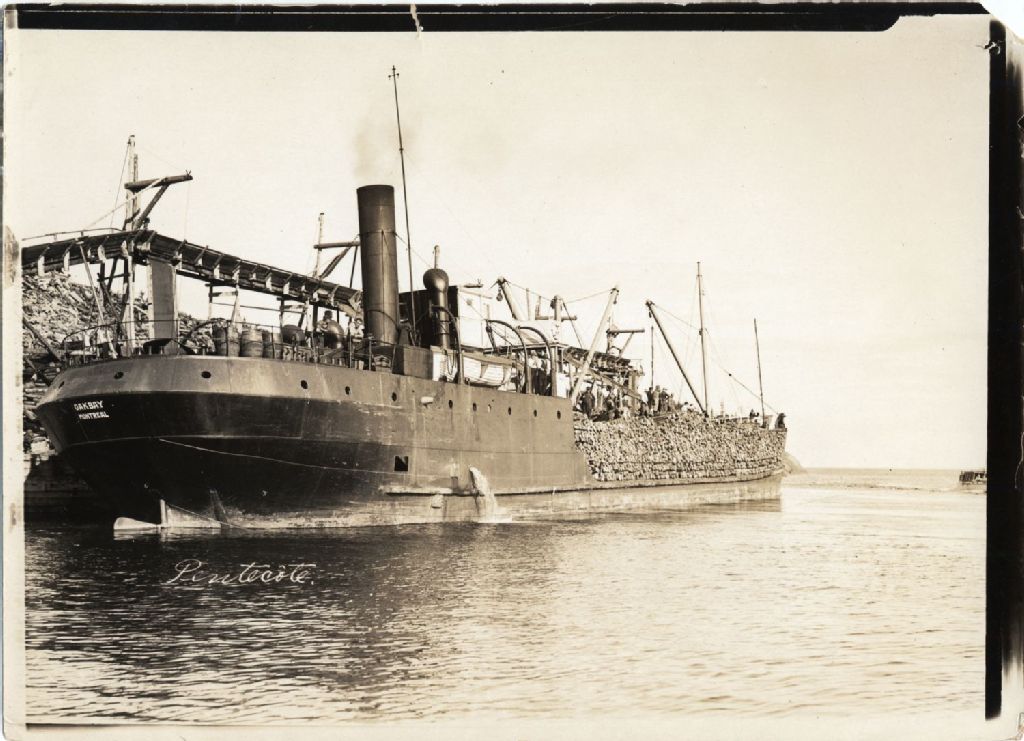Navire "Oakbay - Montreal" au quai de chargement de bois de pâte à Pentecôte