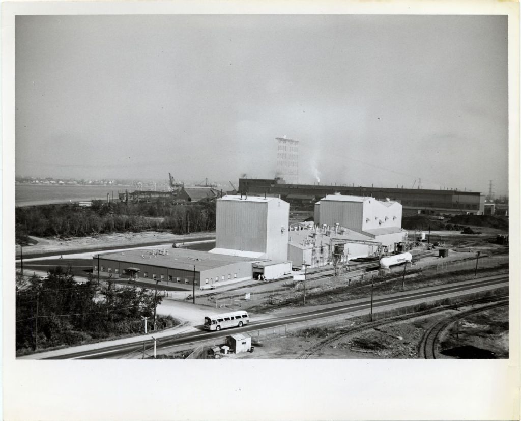 Installations de l'usine "Les poudres métalliques du Québec Limitée" à Tracy, [Vers 1970], Archives nationales à Québec, Fonds L'Action catholique, (03Q,P428,S3,SS1,D29,P94), Photographe non identifié.