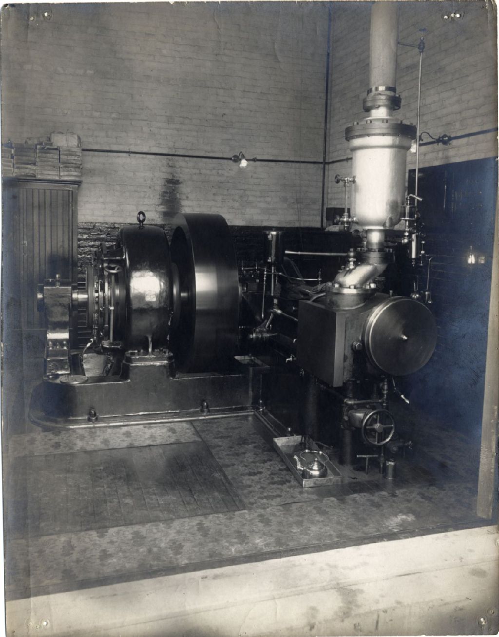 Moteur de l'usine, [Vers 1915], Archives nationales à Québec, Fonds L'Action catholique, (03Q,P428,S3,SS1,D2,P23), Photographe non identifié.
