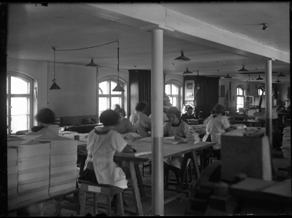 Atelier de reliure de "l'Action Sociale Limitée", [Vers 1925], Archives nationales à Québec, Fonds L'Action catholique, (03Q,P428,S3,SS1,D2,P39), Photographe non identifié.