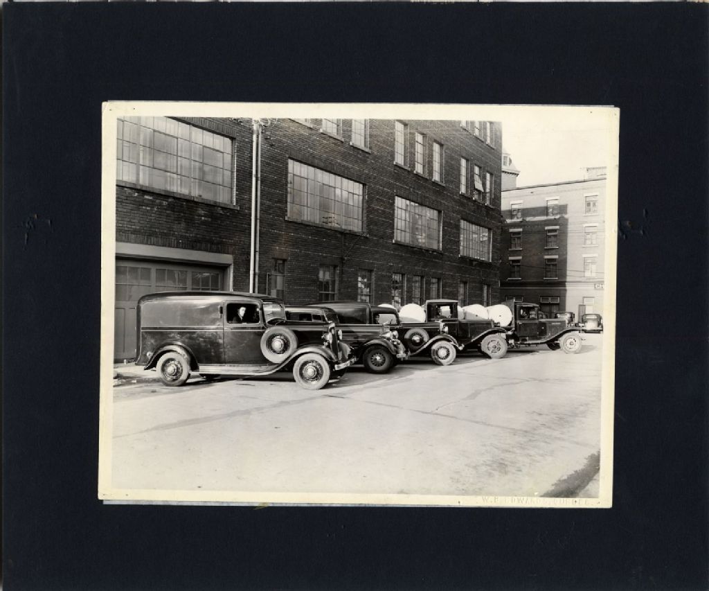 Vue éloignée prise à l'arrière de l'édifice, au loin une partie du Château Champlain. L¿édifice était situé sur le boulevard Charest angle Vallière, Quartier Saint-Roch