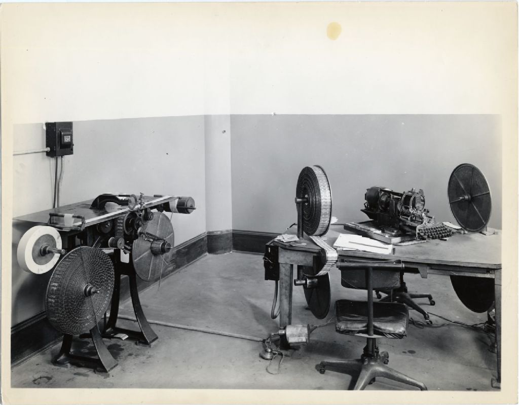 Machines qui servent à adresser le journal pour l'expédition à la clientèle. L¿édifice était situé sur le boulevard Charest angle Vallière, Quartier Saint-Roch