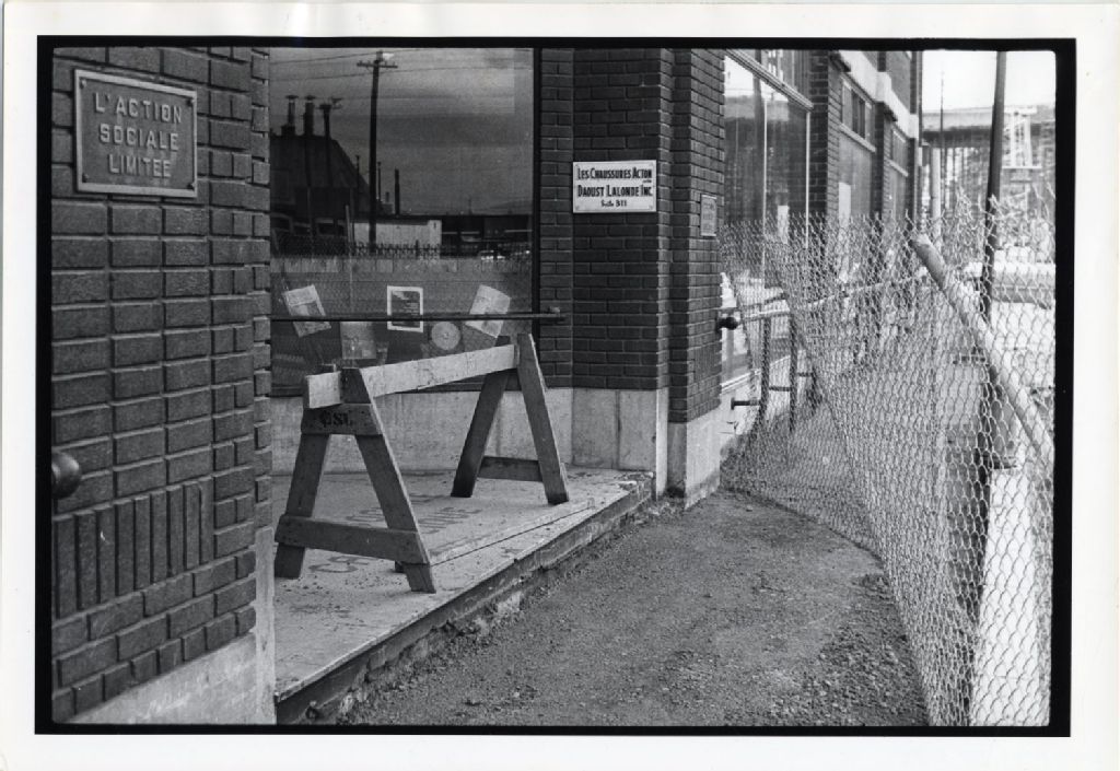 Chantier de construction devant l'édifice, [Vers 1970], Archives nationales à Québec, Fonds L'Action catholique, (03Q,P428,S3,SS1,D2,P75), Photographe non identifié.