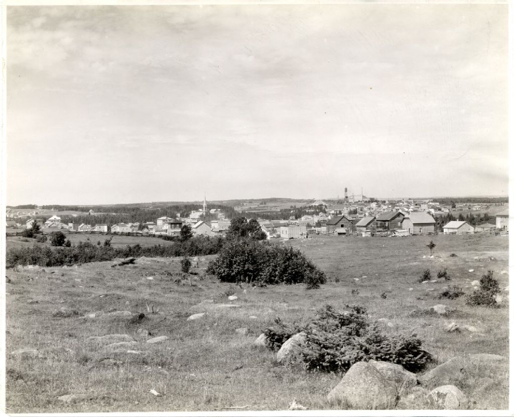 Vue panoramique de Saint-Joseph d'Alma, [Vers 1930], Archives nationales à Québec, Fonds L'Action catholique, (03Q,P428,S3,SS1,D30,P103), Chemin de fer national du Canada.