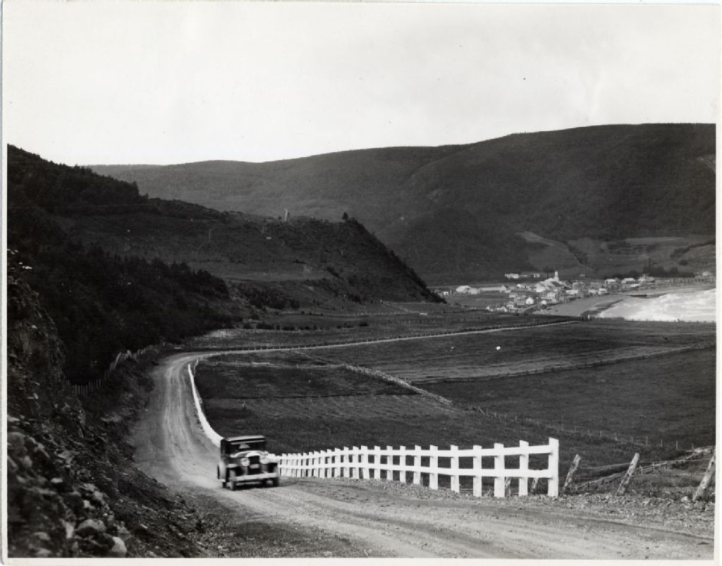 Route principale pour le village de Mont-Louis, [Vers 1930], Archives nationales à Québec, Fonds L'Action catholique, (03Q,P428,S3,SS1,D39,P69), Chemin de fer national du Canada.