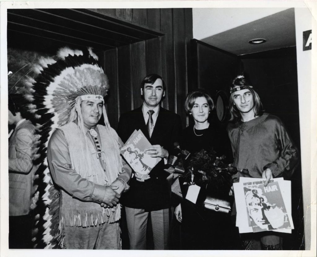 Jean Duceppe, Jean-Marie Lemieux et deux autres personnes, [Vers 1970], Archives nationales à Québec, Fonds L'Action catholique, (03Q,P428,S3,SS1,D40,P37), Jean Belisle / François Moisan.