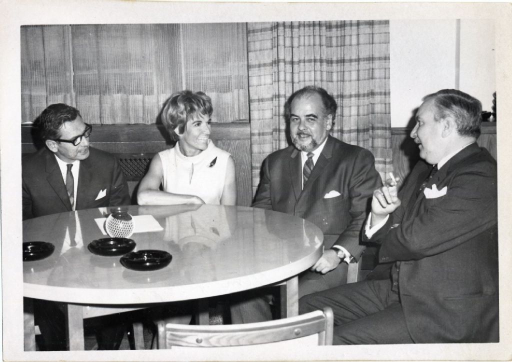 Paul Falardeau, Janine Sutto, Guy Beaulne et Jean Duceppe, [Vers 1970], Archives nationales à Québec, Fonds L'Action catholique, (03Q,P428,S3,SS1,D40,P7), Photographe non identifié.