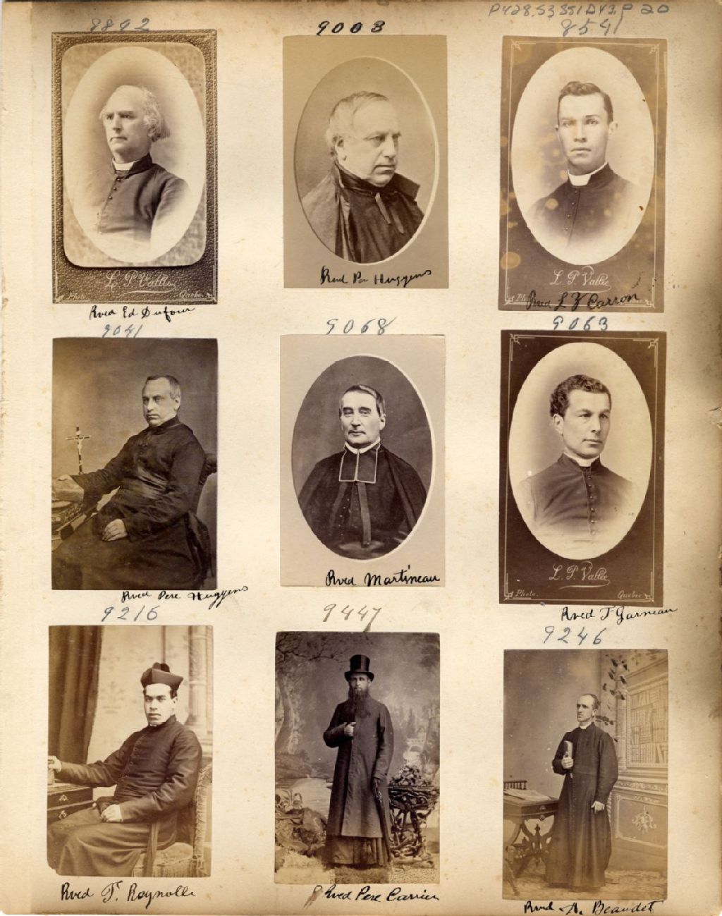Album des prêtres: (8842) Édouard Dufour, 1814-1889; (9003) Hugyens; (8541) L. Z. Caron; (9041) Hugyens; (9068) David Martineau, 1815-1882; (9063) Ferdinand Garneau, 1846-1919; (9216) F. Raynolle; (9447) Charles-Édouard Carrier, 1853-1911; (9246) Alphonse-Andronique Beaudet, 1852-1897