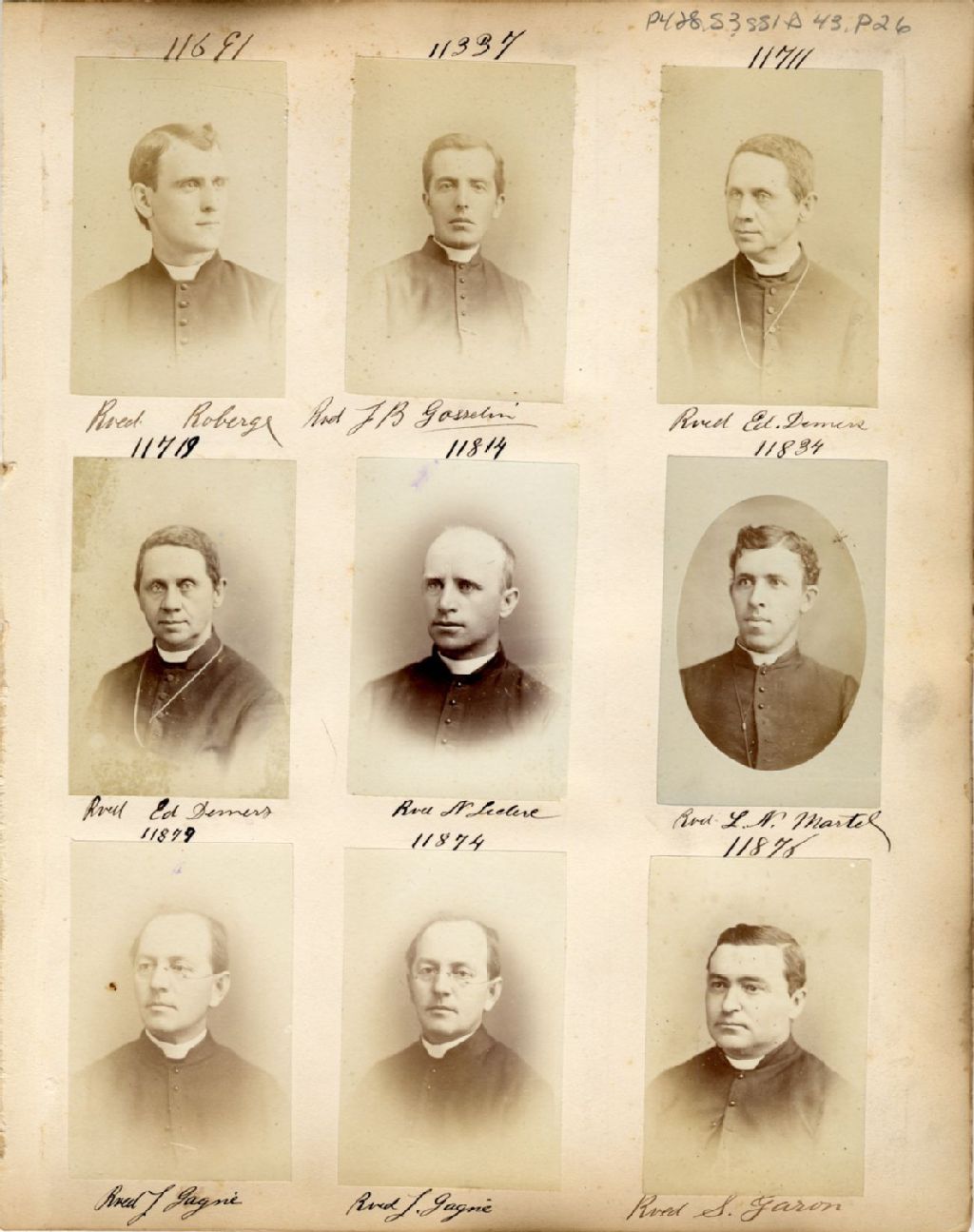 Album des prêtres: (11691) T. Roberge; (11337) J.B. Gosselin, 1842-1925; (11711) Édouard Demers, 1831-1892; (11719) Édouard Demers, 1831-1892; (11814) Napoléon-Honoré Leclerc, 1849-1899; (11834) L. N. Martel; (11879) L. Gagné; (11874) L. Gagné. (11876) S. Garon