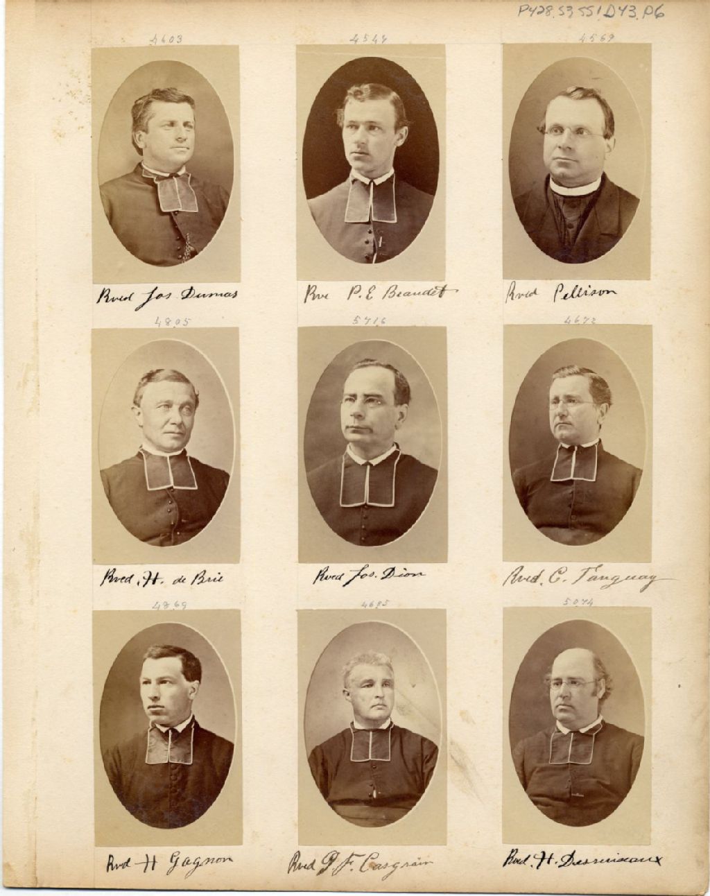 Album des prêtres: (4603) Jos. Dumas; (4547) P. E. Beaudet; (4569) Pellison; (4805) H. de Brie; (5716) Jos. Dion; (4672) Cyprien Tanguay, 1819-1902; (4869) Hyacinthe Gagnon, 1837-1900; (4685) P. F. Casgrain; (5074) Joseph-Honoré Desruisseaux, 1834-1892