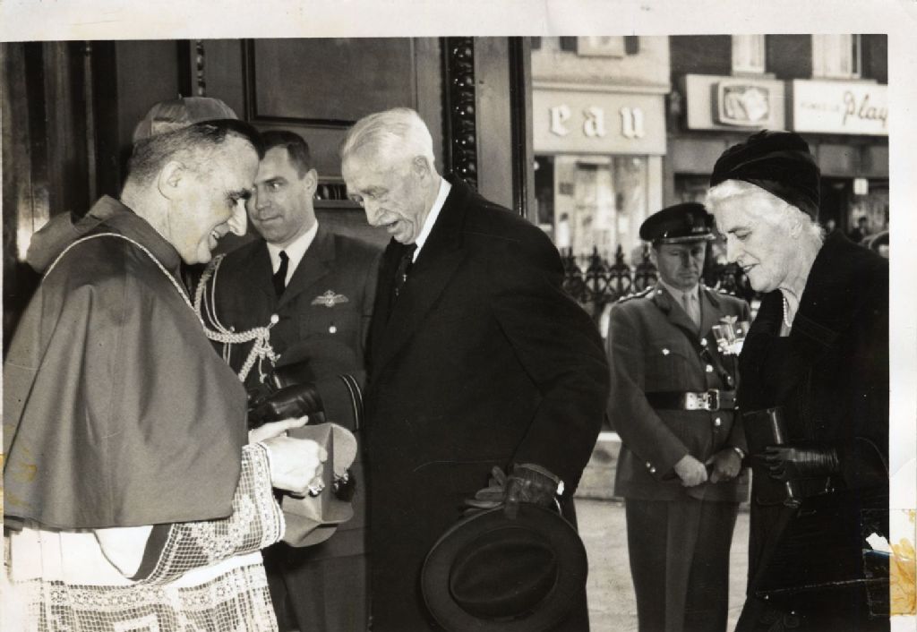 Cardinal Maurice Roy, Georges P. Vanier et Madame (Pauline Archer), [Vers 1965], Archives nationales à Québec, Fonds L'Action catholique, (03Q,P428,S3,SS1,D44,P378), Photographe non identifié.