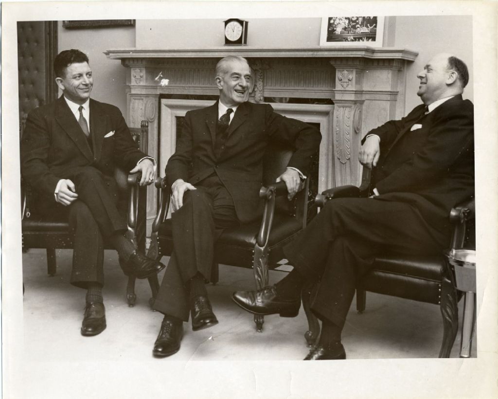 Antonio Barrette, le consul de France à Québec et l'ambassadeur de France à Ottawa, [Vers 1950], Archives nationales à Québec, Fonds L'Action catholique, (03Q,P428,S3,SS1,D44,P493), Photographe non identifié.