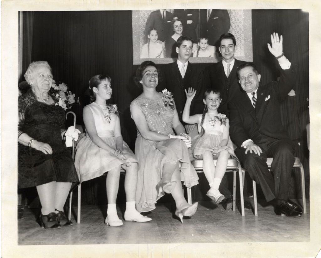 Daniel Johnson, Madame (Reine Gagné) et leurs enfants, [Vers 1965], Archives nationales à Québec, Fonds L'Action catholique, (03Q,P428,S3,SS1,D44,P511), Photographe non identifié.