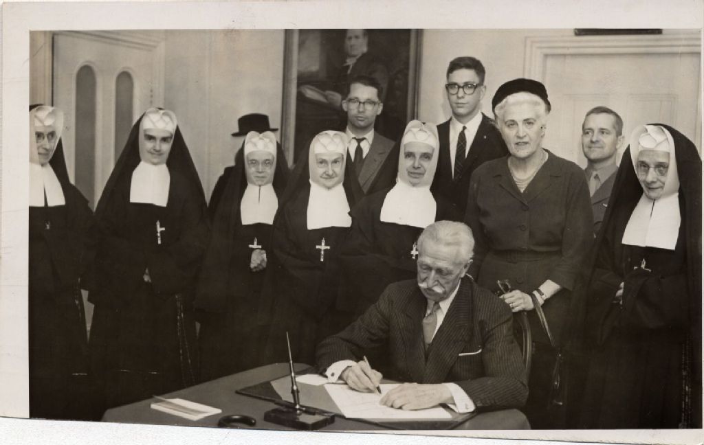 Photo de reportage du gouveneur général et son éouse chez les Soeurs du Bon-Pasteur