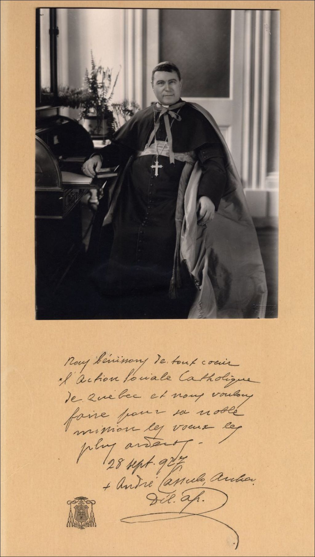 Mgr Andrea Cassulo, septembre 1927, Archives nationales à Québec, Fonds L'Action catholique, (03Q,P428,S3,SS1,D44,P553), Livernois.