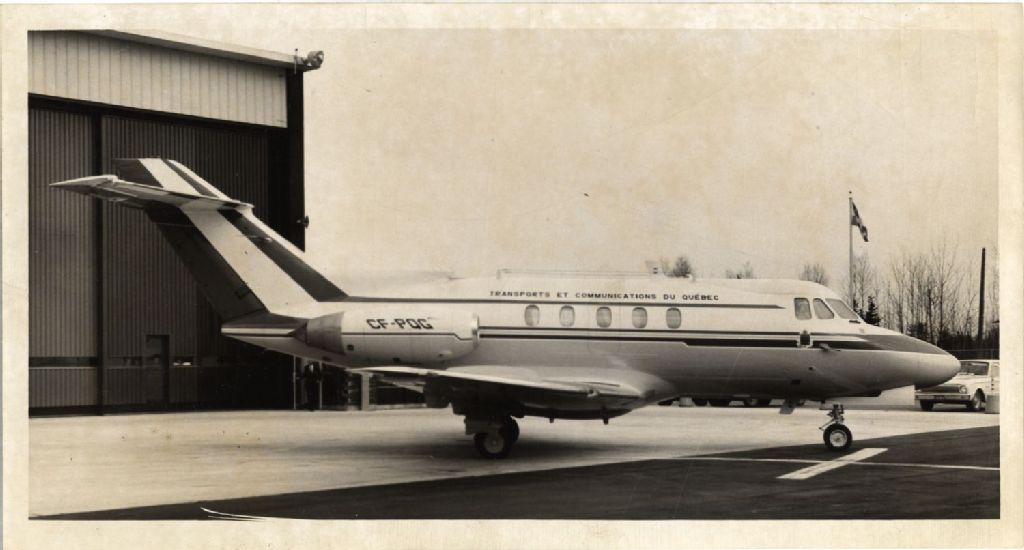 Avion du Gouvernement du Québec devant le hangar, [Vers 1965], Archives nationales à Québec, Fonds L'Action catholique, (03Q,P428,S3,SS1,D6,P7), Photographe non identifié.