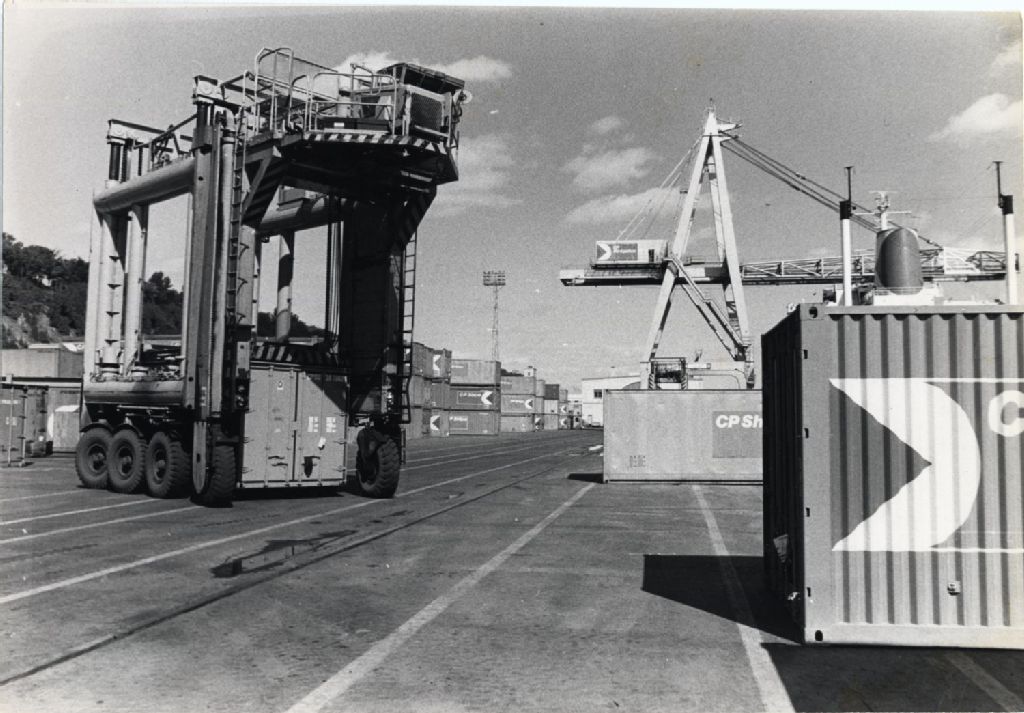 Chantier des conteneurs de CP Navigation au port de Québec, 1972, Archives nationales à Québec, Fonds L'Action catholique, (03Q,P428,S3,SS1,D7,P103), Jacques Du Fresne.