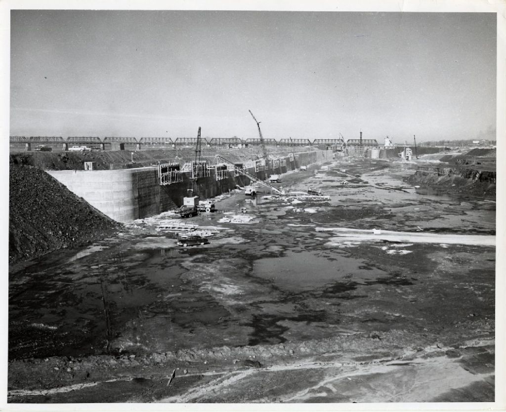 Chantier de construction de l'écluse à Saint-Lambert, 1957, Archives nationales à Québec, Fonds L'Action catholique, (03Q,P428,S3,SS1,D7,P41), Hans van der Aa.