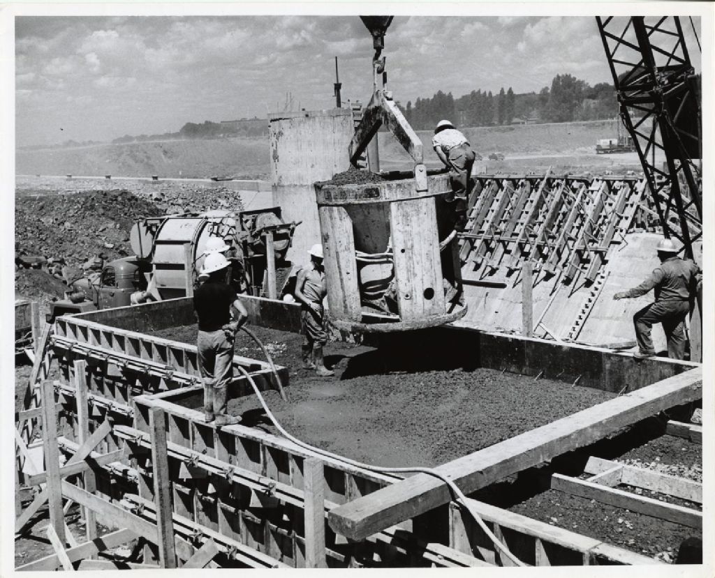 Chantier de construction de l'écluse à Saint-Lambert, 1957, Archives nationales à Québec, Fonds L'Action catholique, (03Q,P428,S3,SS1,D7,P42), Hans van der Aa.