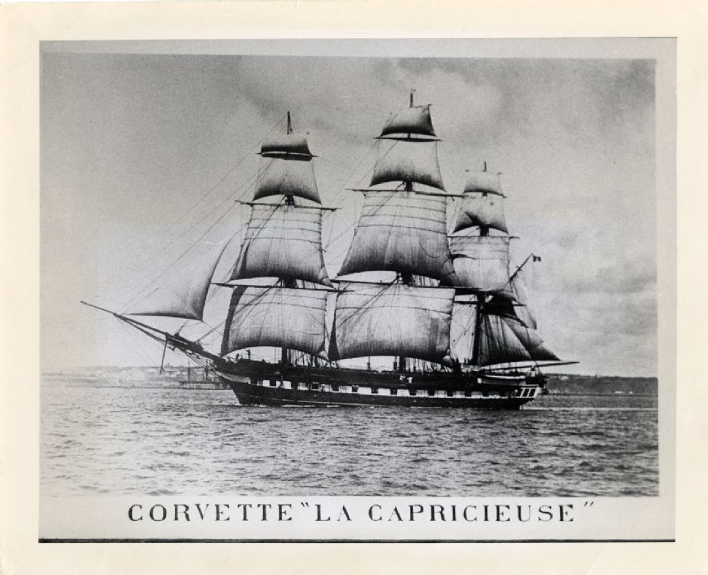 Reproduction photographique d'une épreuve ancienne du navire sur le fleuve Saint-Laurent. Voir la page couverture de l''édition de l'Action catholique du 14 juillet 1955