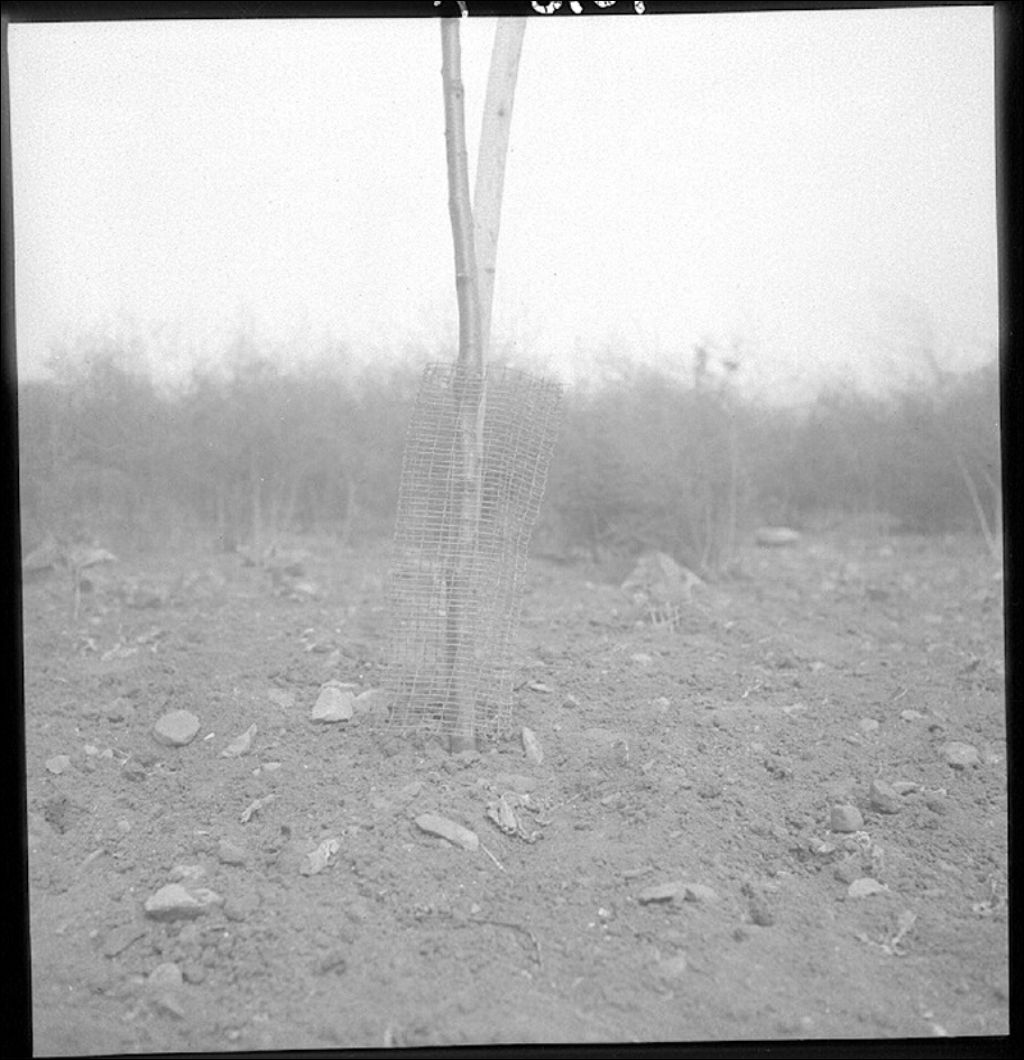 Treillis protecteurs des troncs de pommiers, île Bizard