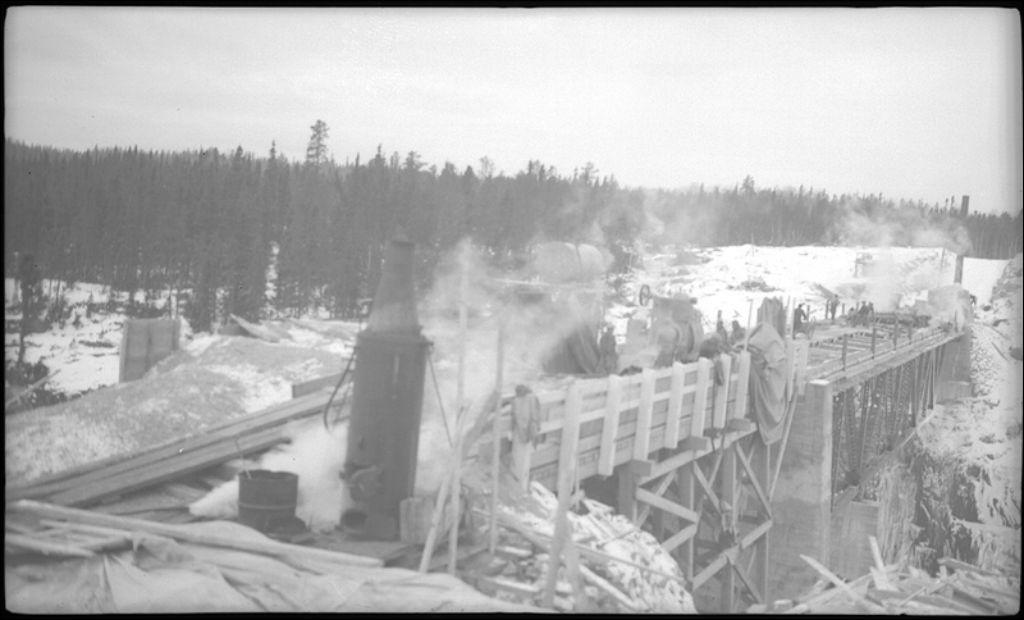 Pont sur la rivière Manicouagan Ouest, 1942, Archives nationales à Québec, Fonds Ministère de la Culture et des Communications, (03Q,E6,S7,SS1,D2,P10331), J.A. Fournier.