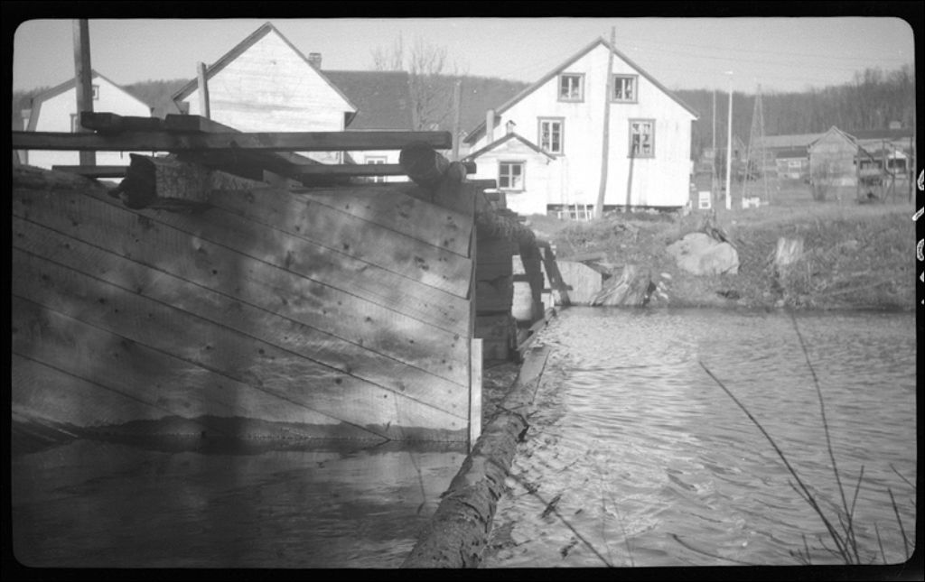 Écluse en construction au lac Saint-Joseph, 1942, Archives nationales à Québec, Fonds Ministère de la Culture et des Communications, (03Q,E6,S7,SS1,D2,P10376), Yvon Deguise.