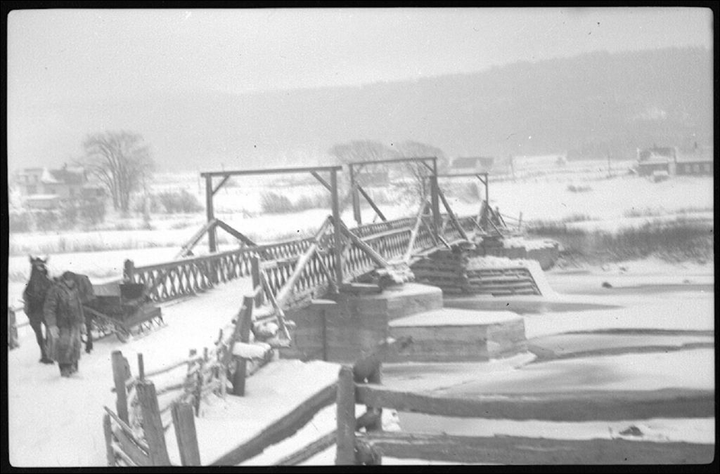 Pont Hudon sur la rivière Ouelle à Saint-Pacôme, 1942, Archives nationales à Québec, Fonds Ministère de la Culture et des Communications, (03Q,E6,S7,SS1,D2,P10452), Raymond Marchand.