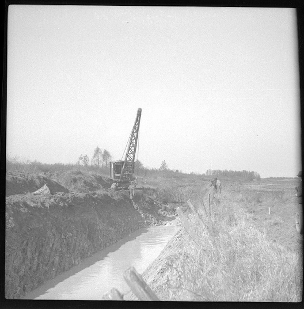 Pelle au travail dans le ruisseau Jackson à Saint-Valentin, 1942, Archives nationales à Québec, Fonds Ministère de la Culture et des Communications, (03Q,E6,S7,SS1,D2,P10616), David Clerk.