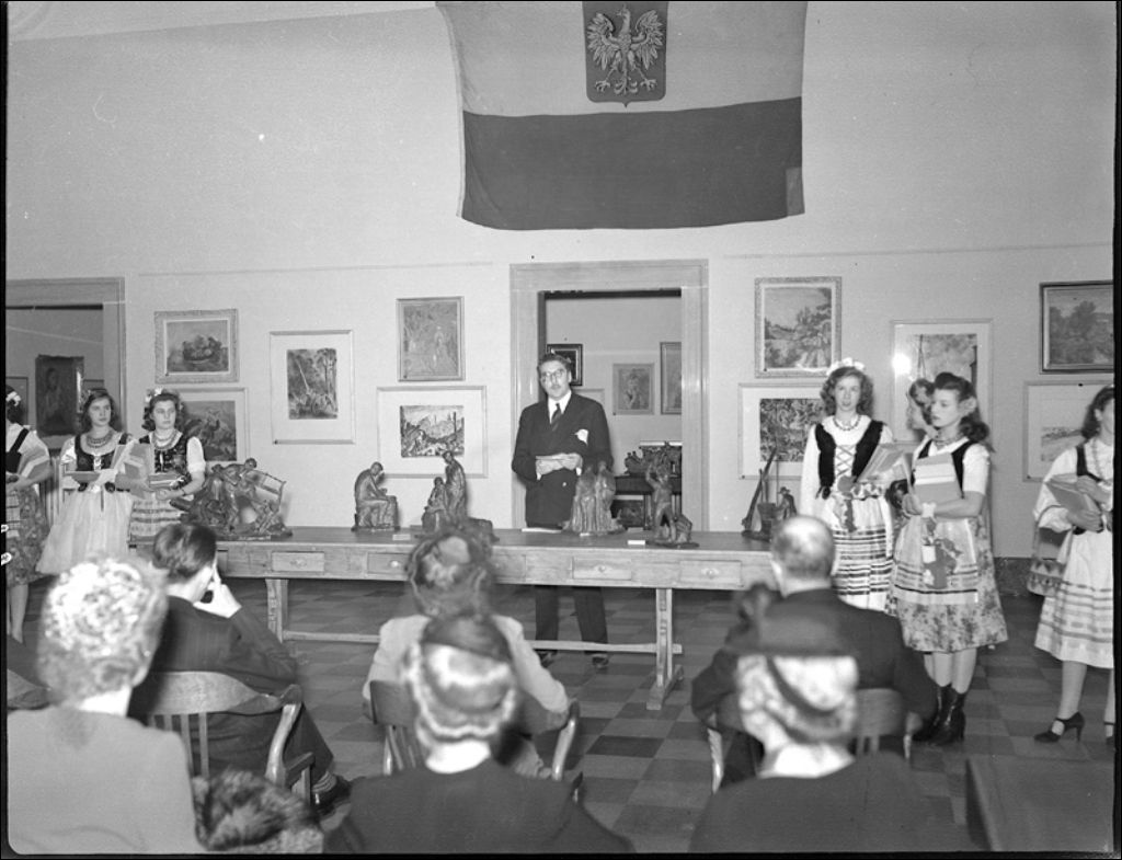 Inauguration de l'exposition sur l'Art polonais au Musée Provincial, allocution de M. Rainville, janvier 1943, Archives nationales à Québec, Fonds Ministère de la Culture et des Communications, (03Q,E6,S7,SS1,D2,P11099), Raymond Audet.