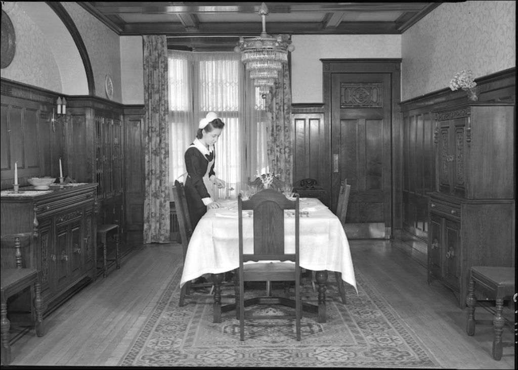 Initiation au service domestique, section service de table à l'école ménagère pratique de Québec, 114 rue St-Cyrille