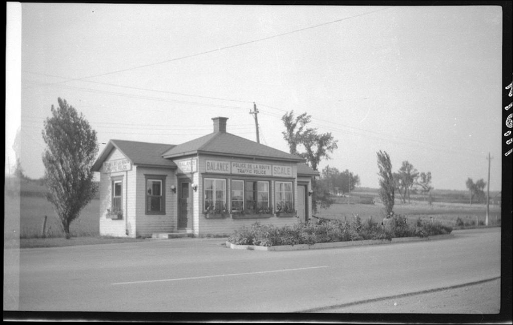 Poste-balance de la police de la route au canton Champigny, 1942, Archives nationales à Québec, Fonds Ministère de la Culture et des Communications, (03Q,E6,S7,SS1,D2,P11514), Léopold Fontaine.