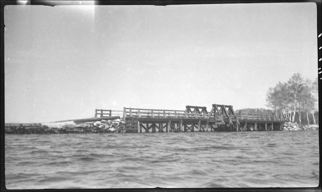 Pont entre les lacs Barrière et Simon à Chêneville, 1943, Archives nationales à Québec, Fonds Ministère de la Culture et des Communications, (03Q,E6,S7,SS1,D2,P11747), Irénée Beaudet.