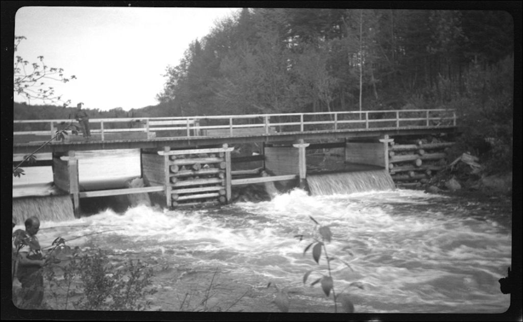 Barrage du lac Saint-Joseph à Duchesnay, 1943, Archives nationales à Québec, Fonds Ministère de la Culture et des Communications, (03Q,E6,S7,SS1,D2,P11808), A.-Euclide Paré.