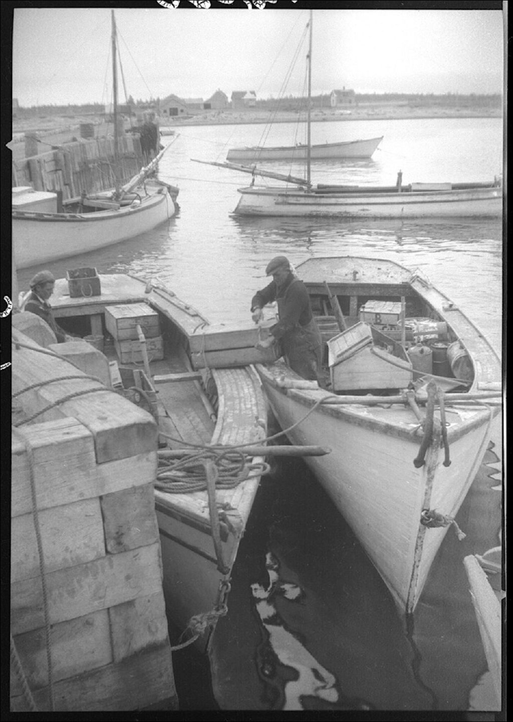 Deux bateaux de pêche à homard à quai à Escuminac, Nouveau-Brunswick