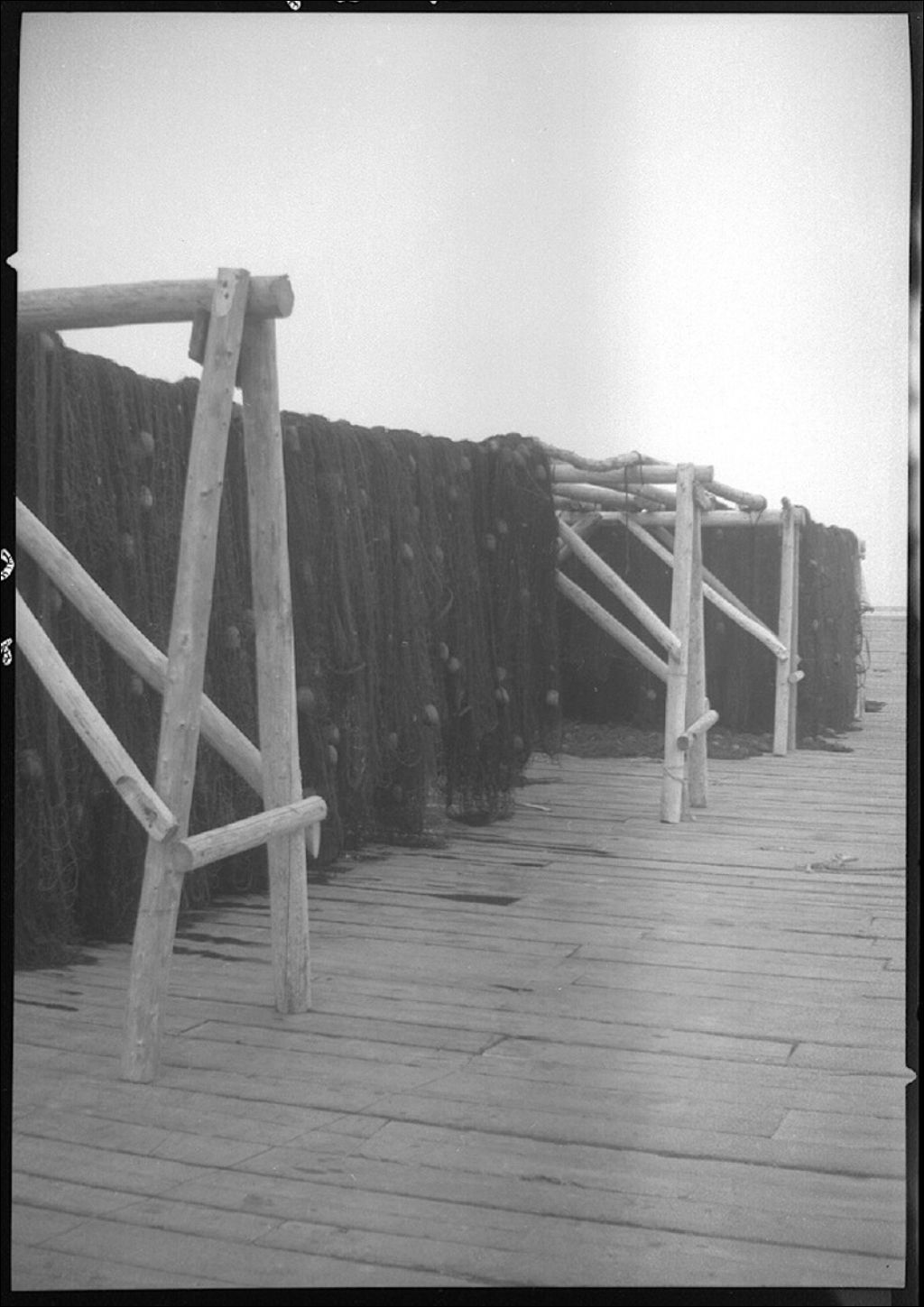 Drift-nets à saumons sur un séchoir au quai d'Escuminac, Nouveau-Brunswick, 1943, Archives nationales à Québec, Fonds Ministère de la Culture et des Communications, (03Q,E6,S7,SS1,D2,P12034), Guy Gaudet.