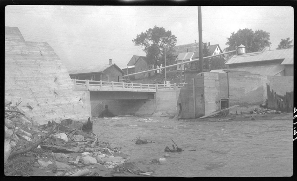 Pont de Slab City sur la rivière Eaton à Sawyerville, comté de Compton, 1943, Archives nationales à Québec, Fonds Ministère de la Culture et des Communications, (03Q,E6,S7,SS1,D2,P12192), L. Langlois.