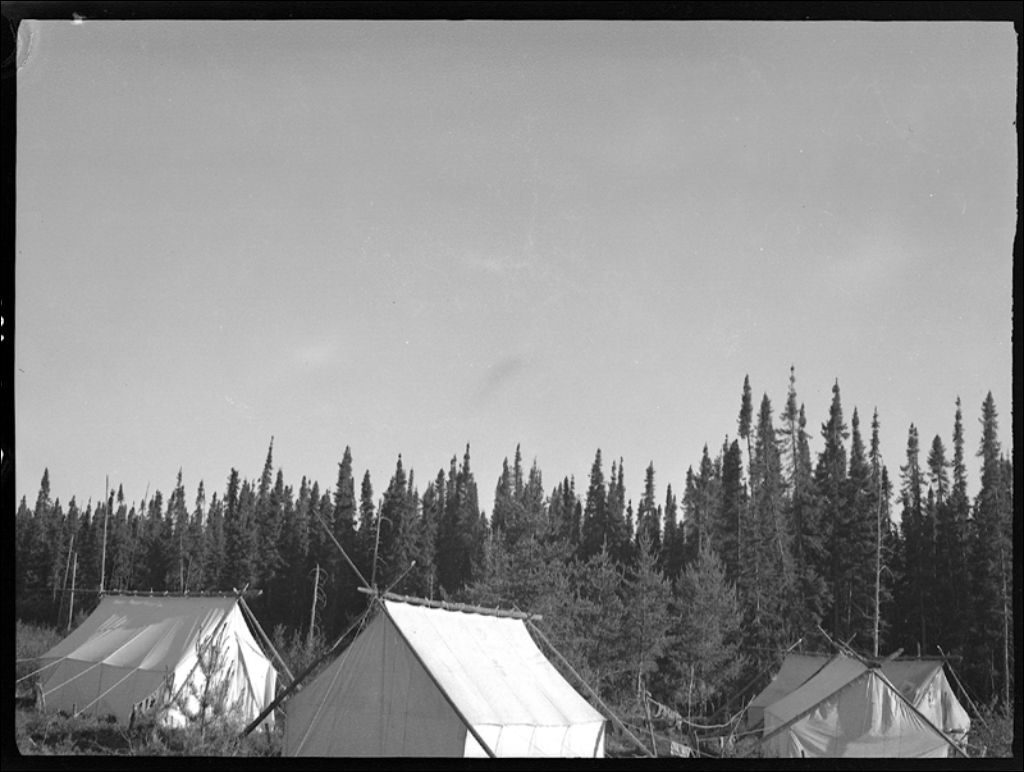 Campement dans le portage à Kodiga, canton Lavergne en Abitibi